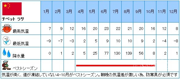 | 含まれるもの | 明記された航空券,寝台列車,ホテル,日本語ガイド,車両,チベット入域証,お食事,入場料 |