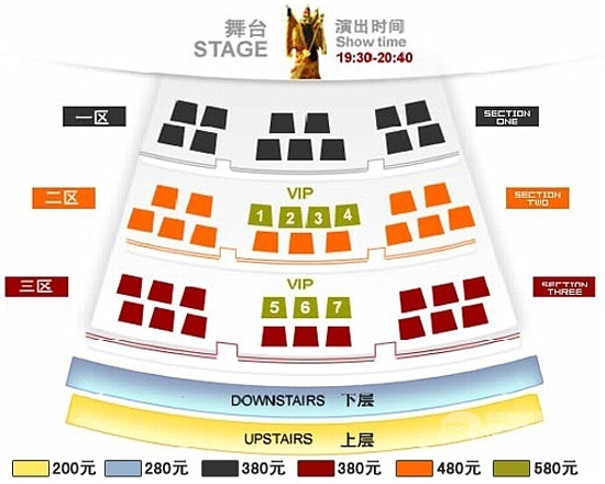 ※価格面と座席位置の面から、多くの方に人気の280元、380元、480元のお席をメインに販売させて頂いております。弊社で580元、200元のお席も30%オフでお手配可能となりますので、ご希望の場合は別途お問い合わせいただけましたら幸いです。 |