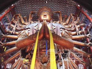 外八廟とは、避暑山荘の東部と北部の山麓に点在する寺廟群のこと。清代1713~1780年に次々と建立され、普陀宗乗之廟、須弥福寿之廟、普寧寺、溥仁寺、普祐寺、安遠寺、普楽寺、殊像寺の8つの寺廟が立ち並ぶことから外八廟と呼ばれるようになった。漢代の宮殿建築を基調としながらも、チベット、モンゴル、ウイグルなど諸民族の建築芸術を取り入れ、独特の寺院建築で建てられている。特にチベット色が濃いのは、清朝がチベット仏教を手厚く保護したためといわれている。 【世界遺産/普陀宗乗之廟】 避暑山荘の北に位置する仏廟で1767年に着工し、4年余りの歳月をかけて建立された。60歳を迎えた清の乾隆帝と皇太后の80歳の誕生日を祝う際、モンゴルや青海、新疆などの地方からの各民族の王侯貴族をもてなすために使われた。 普陀宗乗とはチベット語の“ポタラ”の漢語音訳で、ラサのポタラ宮を模して造られたもの。22万㎡の敷地内に、黄と白で塗り固められた40近くもの仏殿や白台が連なり、周辺の緑と見事に調和して美しい。見どころは、山肌に沿って建てられた大紅台。その名の通り、紅色の建物で、高さは42.5m、荘厳かつ華麗なたたずまいが印象的。大紅台の最も高いところは、金瓦葺きの万法帰一殿がそそり立っている。また、山門近くの碑亭の北側にある五塔門には、吉祥と力強さがシンボルとされる一対の石造が鎮座している。 【世界遺産/普寧寺】 武烈河のほとりに建つ壮麗な寺院群。山の南側が中国式寺院。北側がチベット式寺院となっているのが特徴。1755年から4年の歳月をかけて完成し、大きな木彫りの仏像があることから、大仏寺とも呼ばれている。 山門を抜けるとまず三枚の碑が立つ碑亭が視界に入ってくる。その背後には重厚な中国様式の天王殿がひかえ、東側に鐘楼、西側に鼓楼、北側に大雄宝殿が立つ。大雄宝殿よりもさらに北側に位置するのが、見どころ満載のチベット仏教寺院エリア。高さ36.7mの大乗之閣を中心に、その周りを仏塔や仏殿が取り囲むという構成で、曼荼羅の世界を表現している。なかでも吹き抜けの大乗之閣に安置されている高さ22.23m、重さ110tもの千手千眼観音菩薩は必見。松や柏などを使った寄木造りの観音像で、中国に現存する最大級の木彫仏像としても有名だ。大乗之廟の東西には、皇帝が読経を聞いたり、休憩したといわれる講経堂や妙厳室などもある。 |
