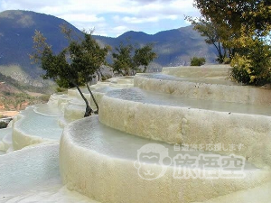 白水台は酸化カルシウムを多量に含む地下水が泉となって湧き出し、そこから流れ出る過程で徐々に結晶化しできあがった棚田式の台地です。四川省の黄龍を思わせる光景が広がります。その神秘的な様相から香格里... |