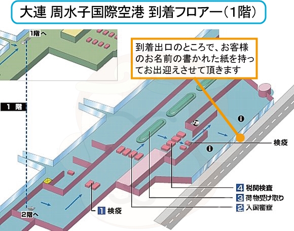 | フライト時刻 大連 空港 にお出迎え (または市内ホテル発) ご希望の 大連 市内エリアへお送り、終了(または空港へお送り) ※ご予約時にフライト便名、時間、お出迎えまたはお送りなど詳細もご連絡お願いいたします。 |