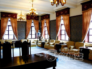 概観は、『川』の字に見える建物と、塔のような形で、灰色のガラス瓦を葺いた屋根でできています。西洋風の趣きを兼ね備えているので、これを『興亜式』と呼んでいます。また、設計は日本の国会議事堂を参考にしています。 主な見所として、溥儀が閲兵を行った閲兵台や、総理大臣・張景惠が使用したオフィスと京華閣画廊があります。 |