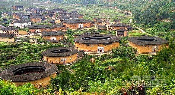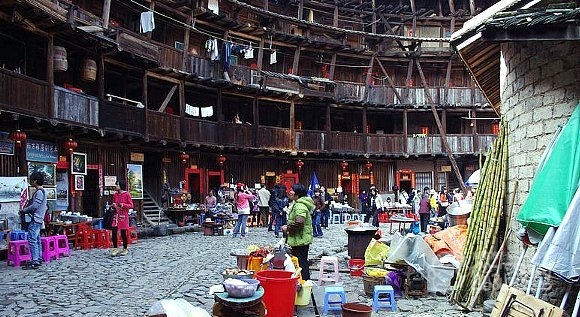 民清時代に築かれた46もの円楼や方楼などの土楼があり、観光地として整備した永定・湖坑村へ訪れます。とくに振成楼・承啓楼は大型の土楼で昔の客家の生活が伺えます。