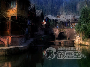 福利古鎮の建物は、青みを帯びたレンガを積み上げて造られています。建物の軒には、様々な動植物の図案が彫刻されています。中には清末民初のもので、アーチ形の洋風窓をした瀟洒な住居も見られます。これらの建物には特異な共通点があります。建物の正門は、必ずその前の建物の裏門に面して建てられています。このように一棟一棟の建物が繋がり、街にある何十棟の建物が一体となっています。天後宮の正門から入って裏門から出れば、外に出ることなく直接興隆街に出ることができます。古鎮内は狭い道が多く、かつては「九井十八