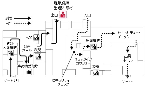 3. (税関審査)入国時に係員より返された出入国カードを提出します。税関申告書部分が切り離されて出国カード部分が返却されます。パスポートを見せるように言われることもあるのでこの検査を終えるまではパスポートは出しやすいところに持っておいたほうがよいでしょう。 また、係員がクレームタグの番号を一つずつ確認することもあるようです。