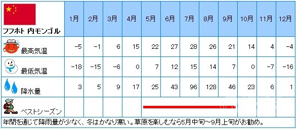 ※内モンゴルは、夏場以外は日本人のツアー客の訪問がございません。ガイドも年間日本語のガイドの仕事が多いわけではない為、多くが別の本業の仕事をしており、夏場のみ兼業でガイドもするケースが多いのが現状です。その為、日本語レベル、日本人の求めるサービスなどが、他地域と比較して劣る部分がございます。上記事情を予めご理解のほどお願い申し上げます。 |