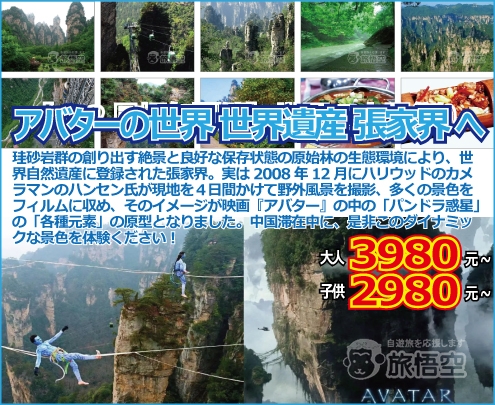 | 名前 | 張家界 武陵源 観光 世界遺産 映画「 アバター 」の世界 & 隠された古城 鳳凰旅行 ツアー 2泊3日 |