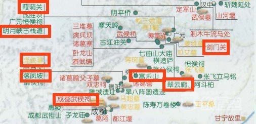 ◆明月峡◆ 蜀の都・成都~西安までの道「金牛道」の一部、前漢の初代皇帝劉邦が項羽との戦の時、軍需物資を前線まで運んだ古桟道としても有名。 ◆昭化古城(葭萌関)◆ 霍峻、馬超、張飛等が戦いをした場所として有名な関所 ◆敬侯祠◆ 蜀の大将軍・録尚書事で四相の1人費禕のお墓 ◆剣門閣◆ 断崖絶壁で、山々が剣のようであり、それが対峙して門のようになっている蜀の最後の防衛線、難攻不落の砦 ◆翠雲廊◆ 蜀の軍事的重要な街道に張飛が植樹した地域 ◆富楽山◆ 劉備が益州に来たとき、劉璋とはじめて出会いの地 ◆落鳳坡/龐統祠◆ 孔明と並ぶ蜀の軍師である龐統の戦死地とお墓 ◆成都武候祠◆ 蜀の宰相、諸葛孔明(諸葛亮)を祀る祠堂 |