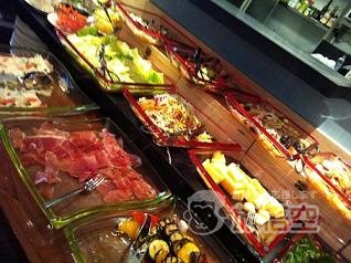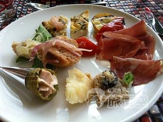 生ハム、チーズプレート、サラダ、マリネと種類豊富! メインは10種類ほどの中なかチョイス。 ~お魚のグリル~は、トマトベースのソース。オリーブ、ケーパーがたっぷり。 他には、ステーキ、和牛ラグーのパスタ、白身魚のラビオリなど。 デザートビュッフェは、カラフルなエクレアがオススメ! ラズベリーエクレアは、甘酢っぱさ&見た目のカラーが人気。 食後には、コーヒーか紅茶が選べます。 |