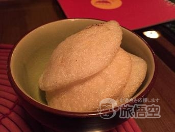 ~蒸し春巻き~米粉の皮に海老やお野菜が巻かれたもの。ツルっとした生地が美味。