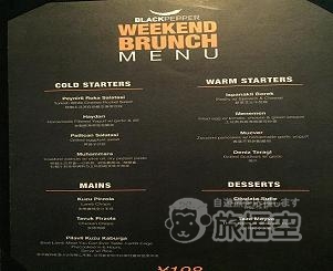 モダン&スタイリッシュな内装のトルコ料理レストラン「Black Pepper」。お店は、以前ご紹介したTomatitoと同じ敷地内の2階になります。夜は20種類ほどのお料理の中から、プリフィックスコースのみ。今回は週末ブランチコースを頂きました。ブランチコース/198元 冷菜/温菜/メイン/デザート、内容盛りだくさん!