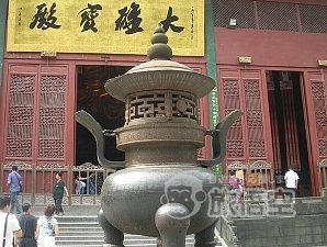 本殿に安置された金色釈迦尊像は高さ24.8m。木彫座像の中では中国最大のものである。 そして見逃せないのは、参道の途中にある飛来峰の岩壁ほられた338体の石仏だ。これから五代から元の時代にかけて彫られたもので、中でも951年に彫られた青林洞の西岩壁上座像は、貴重な文化遺産として大切に保存されている。 |