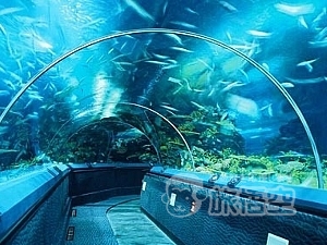 アジア最大級の規模を誇る水族館。館内は中国、アマゾン、アフリカなど 8つのゾーンに分かれており、四大陸、五大洋からの約300種1万匹以上の珍しい海洋生物が展示されています。
