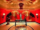 世界的にも有名な香港出身のグラフィックデザイナー、アラン・チャンのデザインで、赤とゴールドの配色が印象的な入口、そしてヒスイをイメージしたライトが並ぶアプローチが特徴的な創作中華のお店です。 |