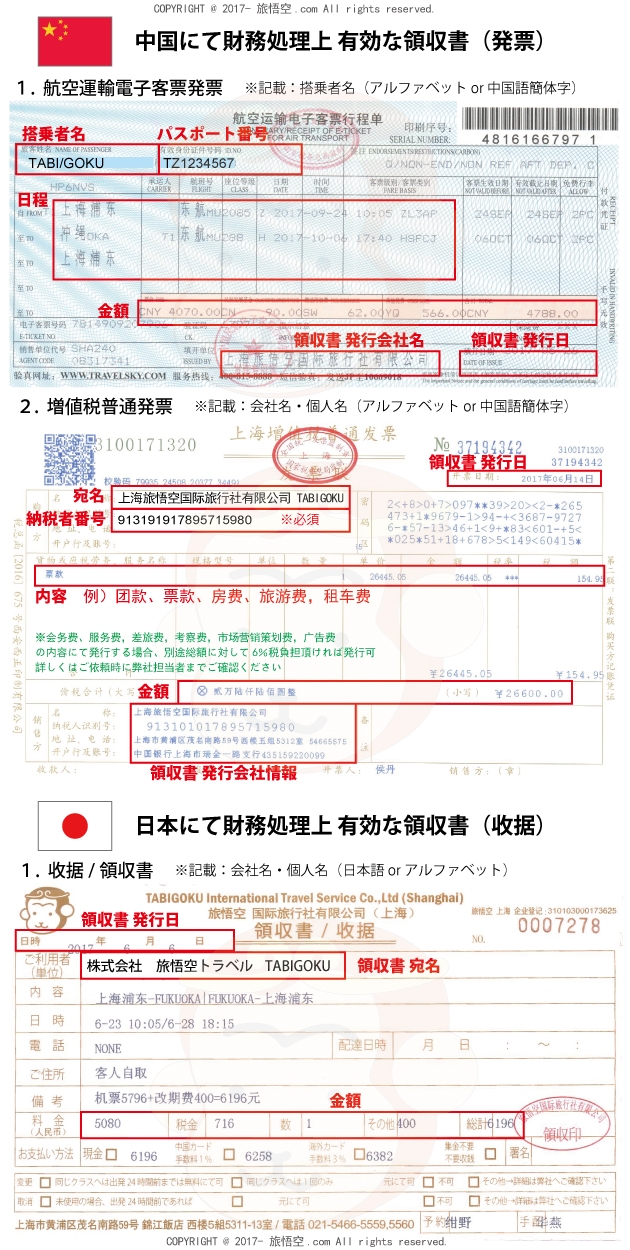 ※上記1,2は、弊社名で発行する中国で財務処理上 認められた領収書となります。