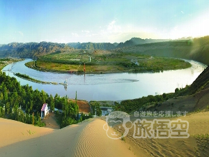 また、包蘭鉄路を敷設時、沙坡頭の風砂が最も強烈で、列車の通行に障害を来すことが考えられました。そのため、1950年代から鉄路脇の緑化工事が行われ、風砂から鉄路を守ることに成功しました。ここは、砂漠緑化のモデルとして有名だけではなく、黄河の両岸の雄壮で美しい景観も大変特徴があります。 |