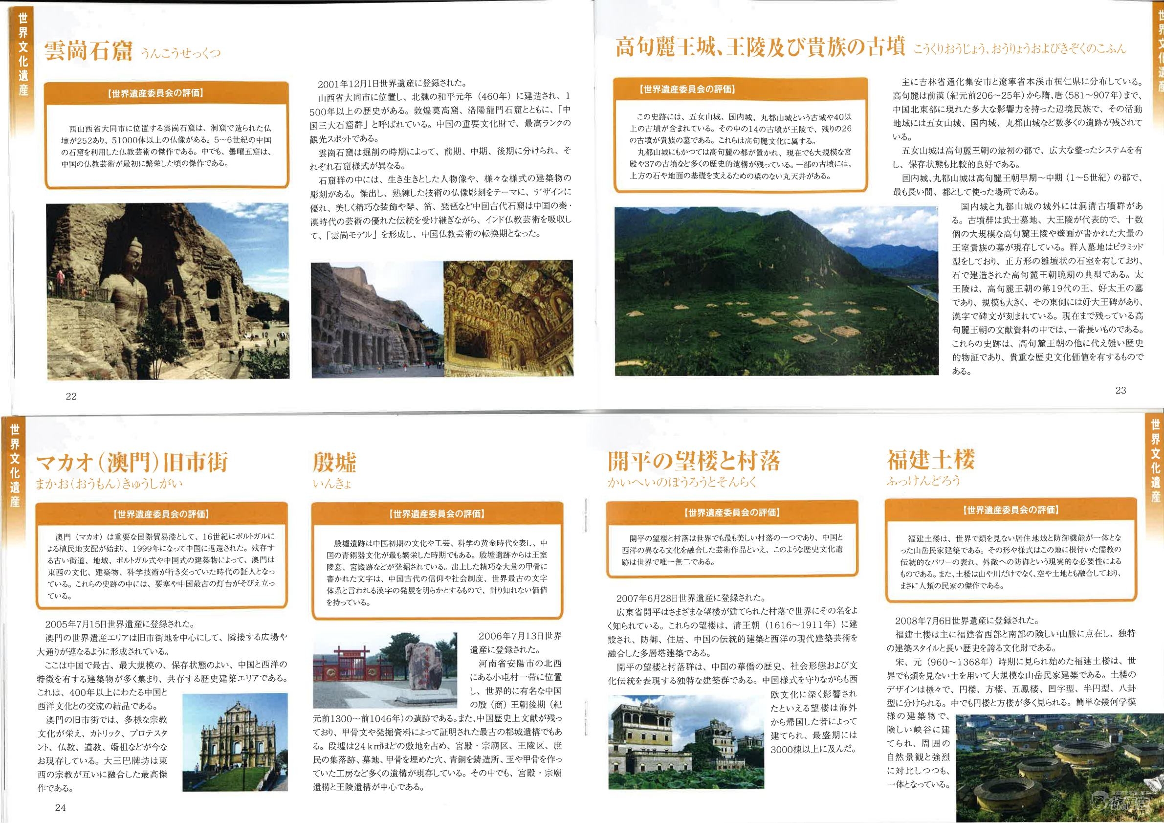 紀元前前後にかけて中国東北~朝鮮半島を支配した高句麗の最初の都である五女山城、その後遷都された国内城、丸都山城と40以上もの王陵や貴族の墓である古墳。ちなみに高句麗は後期に現北朝鮮の首都平壌に遷都した後滅亡を迎えたため、高句麗後期の都城と古墳は北朝鮮にて世界遺産として認定されている。 |