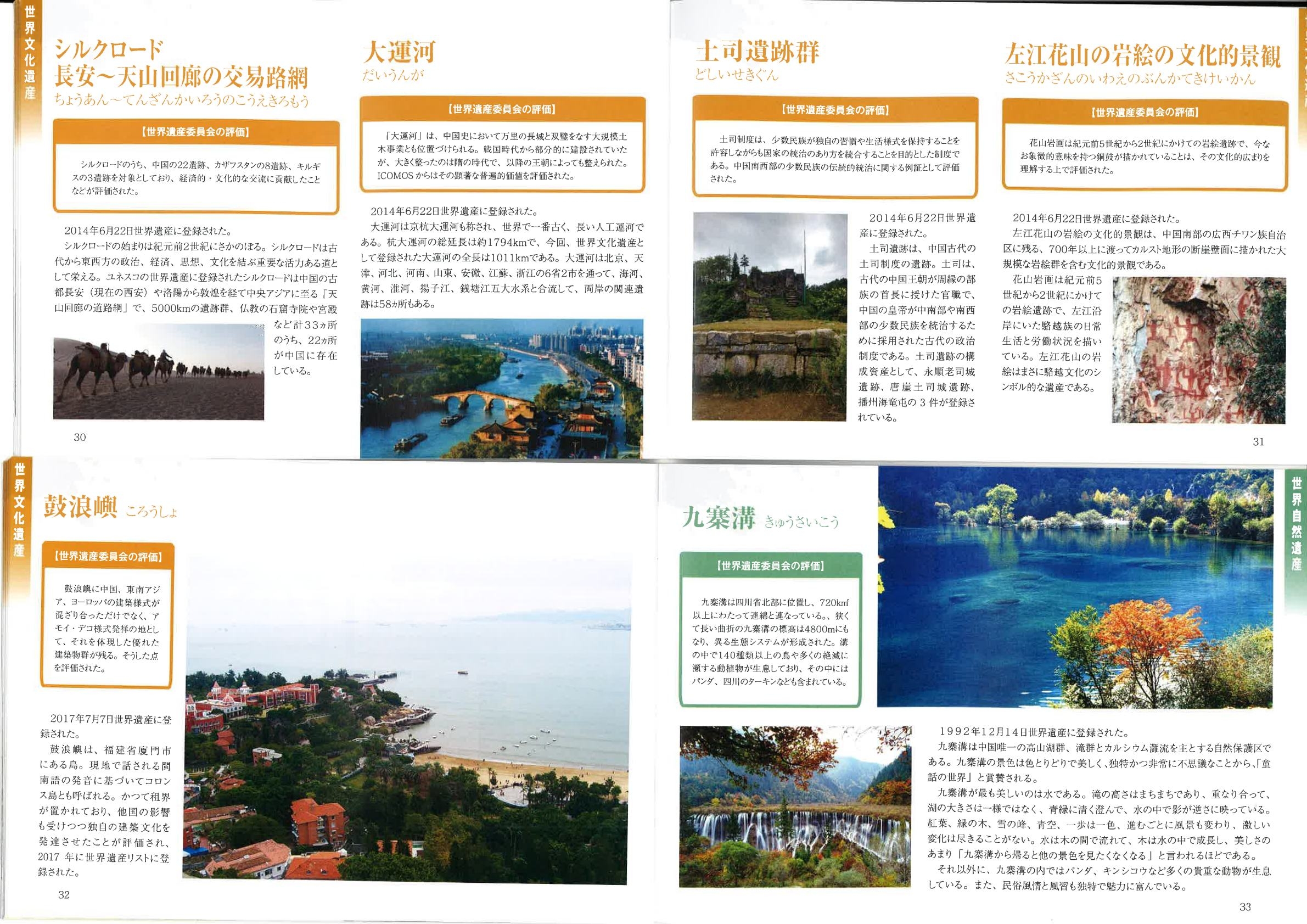 福建省廈門(アモイ)市沖に浮かぶ島で、コロンス島とも呼ばれている。共同租界とは諸外国が共同で行政権をもっていた地域のことで、アヘン戦争後に締結された南京条約で開港されると、外国人居留地として発展した。鼓浪嶼(コロンス島)は中国と西洋文化の交流の結晶で、中国、東南アジア、ヨーロッパ諸国の文化が反映されており、他国の影響も受けつつ独自の建築文化を発達させたことが評価され,2017年に世界文化遺産に登録された。 |