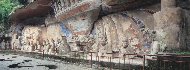 重慶市大足地区の険しい断崖に切り開かれた貴重な石刻群は9世紀から13世紀中期まで延々と掘り続けられた。仏教、道教、儒教の像のほか、各階層の人物像や社会生活の場面を掘られたものあり、宗教から世俗まで内容が豊富で、芸術性が高く、その精巧美や保存状態が完全であることでも世界に知られている。 |
