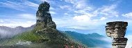 2018年に世界自然遺産に登録され「貴州第一名山」「武陵第一峰」とも呼ばれる。 太古からの姿が変わらない生きた化石と呼ばれる希少な絶滅危惧種、固有種が多く存在し、孫悟空のモデルにもなった金絲猿と梵淨山冷杉(ホンショウモミ)の唯一の生息地であり分布地。2000メートルを超える山々と、シンボルとも言える「紅雲金頂」という岩山の上に、仏教の聖地とされる道場(弥勒道場)が建てられている事で有名。 |