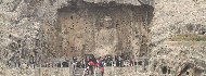 洛陽市南方に位置し、北魏(386~534年)から約400年以上をかけ唐代に完成した石窟寺院群。南北約1kmの断崖絶壁に高さ最大17m最小約2cmのものまで約2,100以上の石窟と10万体以上の仏像等が無数に並び、世界最大の石窟と呼ばれる。 |