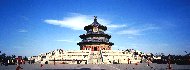 天壇は1420年に明の永楽帝によって建設されたといわれ、地を治める皇帝が天を治める天帝を祭り、交信を行う申請な場所であった。建物の配置は「回」の字型、二重の城壁は北側が丸、南側が四角になっていて、古代中国の「天圓地方」(天は丸、地は四角)という宇宙観を表したものである。 |