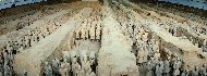 天下を統一した秦の始皇帝はが自らの絶大な権力を永遠のものにするため、生前より造営を開始、38年もの歳月をかけて完成した世界最大規模の陵墓と、その東側約1.5m死後の始皇帝を守るために配置された約8,000点にのぼるとみられる陶製の兵馬。兵馬俑は1974年井戸を掘っていた農民が偶然見つけた陶片がきっかけで発掘が開始された。 |