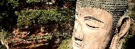 二つの山が向かい合い美しい峨眉のようと称賛されている峨眉山の山頂で中国の第一の仏教寺院が落成され、次第に仏教四大名山として仏教の主要な聖地となっていった。その峨眉山から約40km離れた二つの河の合流地点に河の安全を願い建造されたのが楽山の大仏で、713年の着工から約90年の歳月をかけて完成し、仏像の高さは約71m、世界で最も高い石刻大仏と言われている。 |