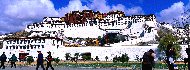 標高約3700mの紅山にあるポタラ宮は7世紀に創建、チベット自治区に現存する最大規模の古代チベット族の宮殿式建築群でチベット仏教の中心となっている。大昭寺(ジョカン寺)は漢族とチベット族を融合する代表的な建築群で数多くの貴重な文化財を有し、羅布林卡(ノルブリン)は歴代ダライ・ラマの夏の宮殿であり、宗教芸術の傑作とも称される。 |