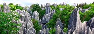 奇観で知られる中国南部のカルスト地帯は、約2億5000万年前の中生代三畳紀から形成されてきた。カルストとは、石灰岩など水に溶けやすい岩石の台地が雨水などで溶食され、長い年月をかけ生成する地形のことで、中国南部のカルスト地形は、重慶市武隆(ぶりゅう)、貴州省茘波(れいは)、雲南省石林(せきりん)の3区域にまたがり、登録面積は1,460平方キロメートルにもおよぶ。規模が大きいだけでなく、地形が多様で生物種も豊富。武隆では自然が刻んだ石の橋や鍾乳洞などが壮観だ。茘波には尖塔状の地形が広がり、豊かな水に育まれた約300種の脊椎動物、1,500種の植物が生息する。石林では尖塔状の奇岩が、天然の芸術のように空高くそびえている。 |